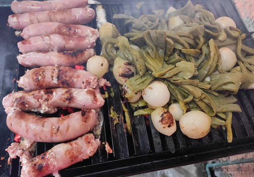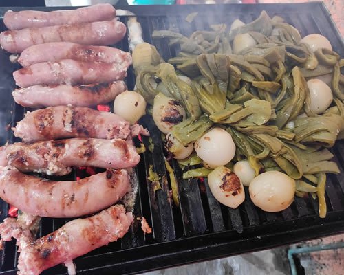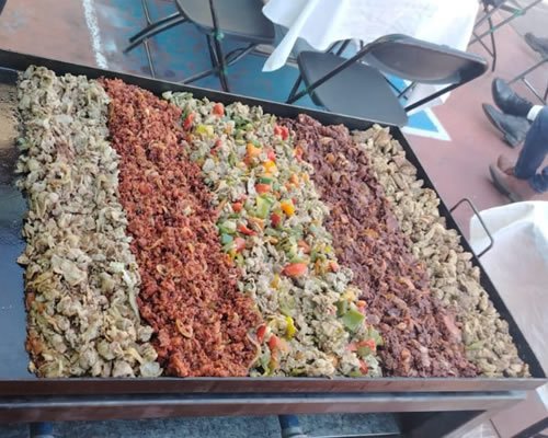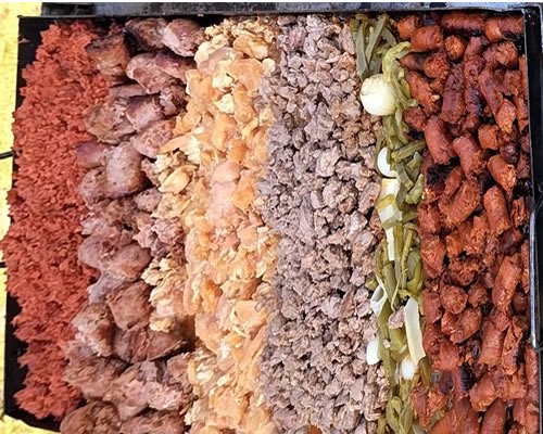 Parrillada con carnes premium para su evento, nopalitos y cebollas cambray